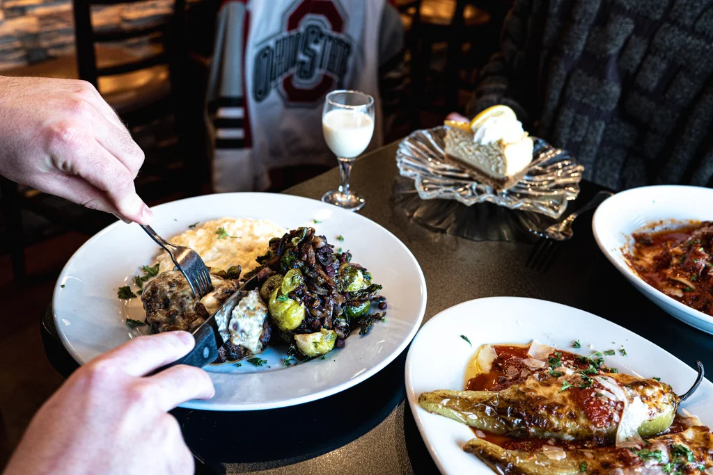 If you’re in the mood for something a little meatier, go for the Buckeye Steak with the gorgonzola bacon crust. It’s served on a bed of parmesan risotto with a side of pancetta brussel sprouts. Yep, we’re drooling already.