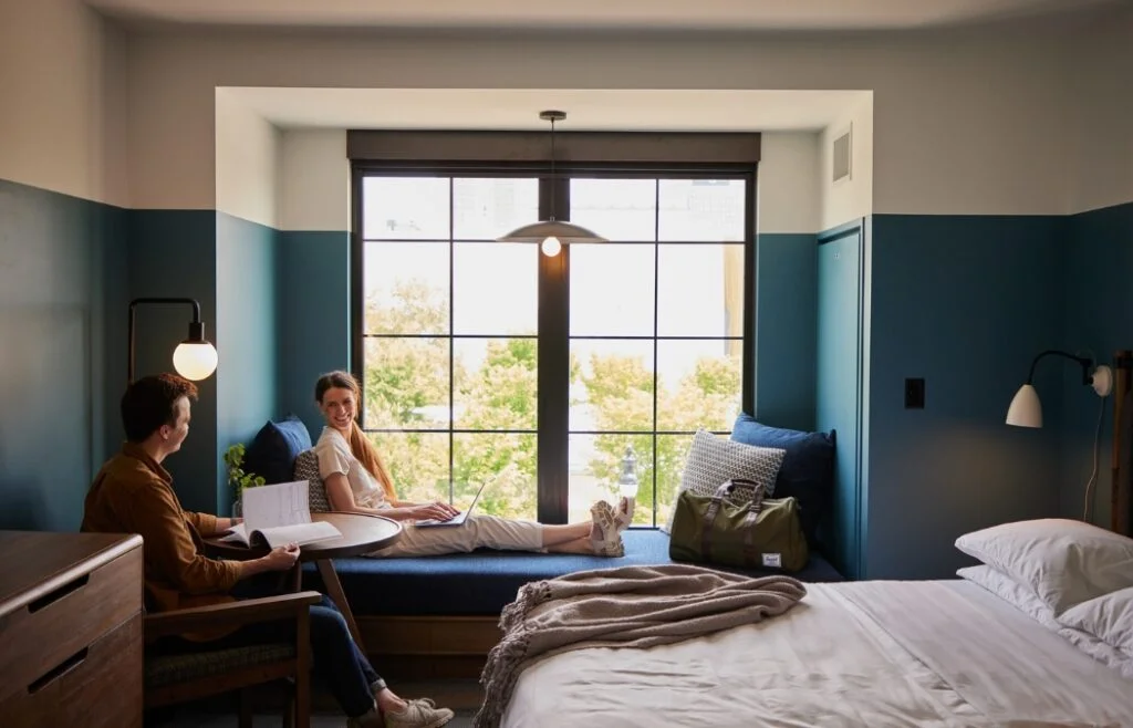 The Junto almost serves as a reminder that Columbus can truly deliver. The best part is, you don’t even have to leave the hotel. There’s a stunning cafe on the ground floor called Maudine’s where you can order your morning caffeine fix, breakfast, and pastries. Sit out on the patio or relax inside the black and white-tiled cafe while sipping on a warm drink. For lunch, dine at the cozy Little West Tavern and enjoy robust western dishes. For drinks, head up to The Brass Eye on the rooftop and watch the sun go down over the Columbus skyline.