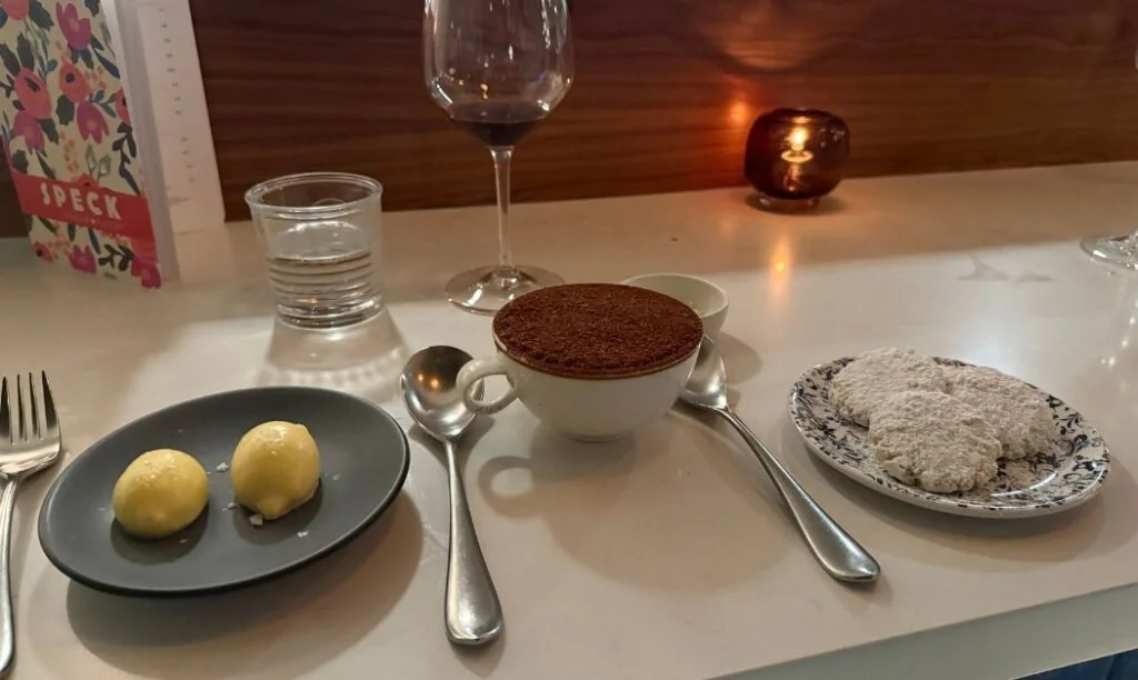 For dessert, we ordered the tiramisu, but the Speck team wasn’t done spoiling us yet. They brought out lemon cookies, light and crisp on the outside, filled with a lemon-almond center that was dangerously addictive.