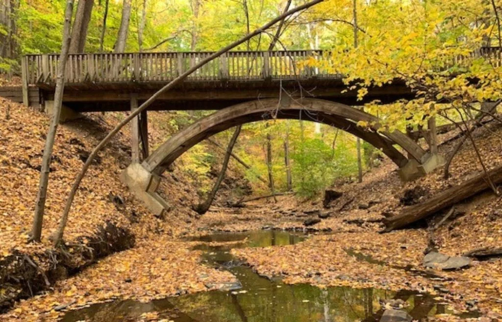 Hike through Dripping Rock Loop at High Banks Metro Park and walk across the picturesque bridge! Snag a photo with the bridge and brightly-colored trees as your backdrop – you won’t regret it.