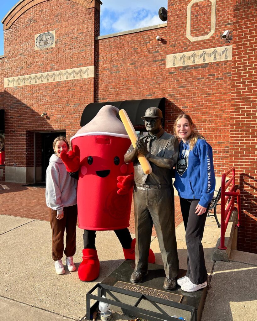 When in Columbus, visit us! Sing along to the music of The Best Damn Band In The Land as you exit your car. Pose for a picture with our life-size bronze Woody Hayes statue or our life-size Brutus Buckeye. Another great backdrop for pictures is our 70 foot mural depicting popular Ohio State landmarks on the side of our building. And when you finally make it in the store…. You will feel like a kid at Disney World!