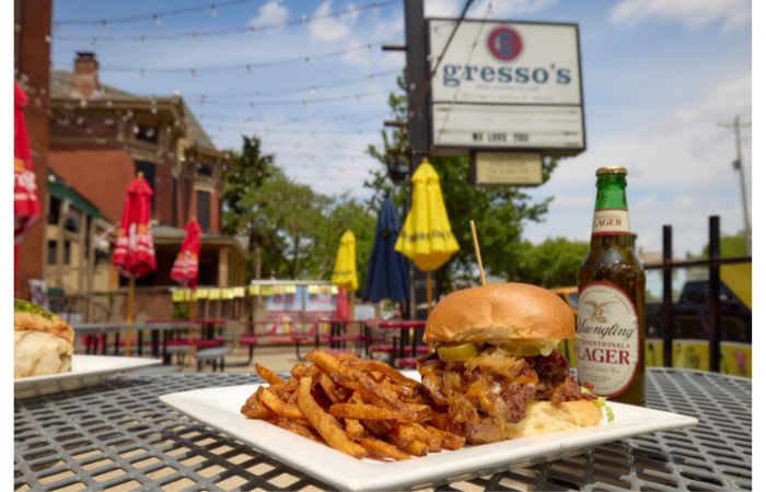 At Gresso’s, we blend the energy of a classic dive bar with the elevated flavors of fresh, from-scratch dining. Set in a historic building, our space brings together rich character, great drinks, and handcrafted meals in an unbeatable atmosphere. Stop in for our Trivia Night, Kareoke, or our Final Fridays with live music at the end of each month.