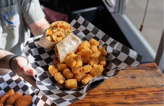 The menu features classic pub fare, like southwest egg rolls, coated fries, burgers, and more.