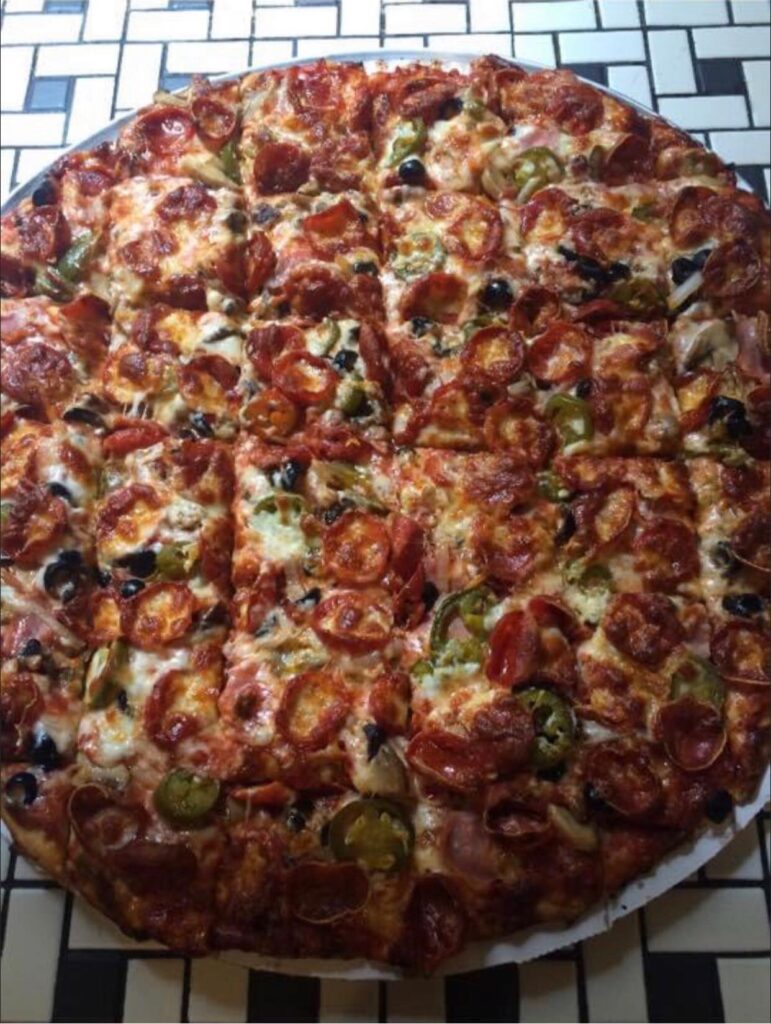 Locally owned pizzeria we hand make our crust and sauce and we bake our pizzas in a stone oven… we also open up at 6:00am for breakfast we have a full menu… great place to watch the games and have some drinks and wings Established in 2002. We started off as just a pizza shop and have grown to a full restaurant with a full menu