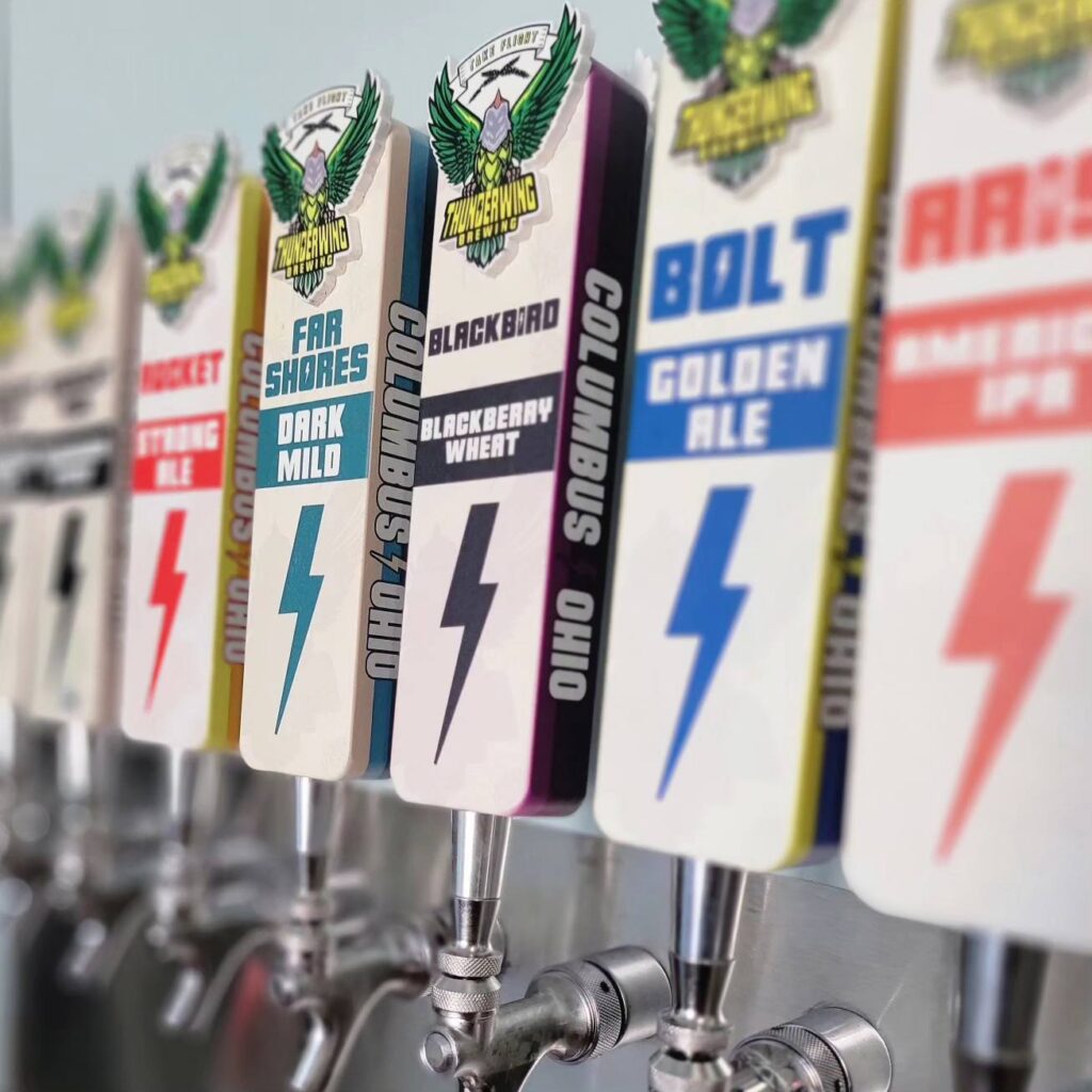 THUNDERWING BREWING is an American Craft brewery which is operating out of the west side of Columbus (2419 Scioto Harper Drive Columbus OH 43204). Focusing on a wide variety of offerings, from light easy drinkers, to dark robust ales with plenty of hoppy options as well! In addition, interesting keg infusions can be found on the tap list as well as harder to find styles such as the California Common and Dark Mild. Aside from the beer, Thunderwing Brewing offers a consistent line-up of food trucks such as Fetty’s and Eye of the Tiger. Its taproom features 5 pinball machines and a ‘lounge’ with a TV for game day or just an inclusive spot for a small group to gather. Also, there are events! Taproom yoga, euchre, and music trivia just to name a few!