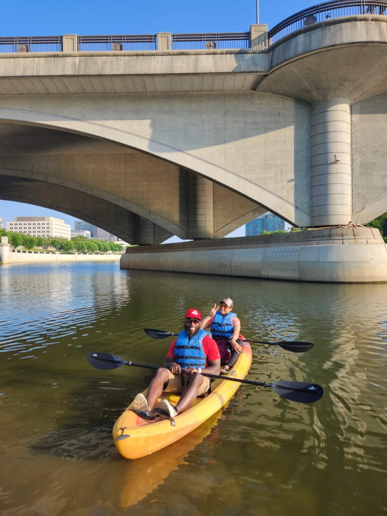 In downtown Columbus on the Scioto Mile. The meeting location is Bicentennial Park (233 S. Civic Center Drive). We are located on the grass lawn right along the river and the bike path. It is on the east side of the Scioto River, between Main Street and Rich Street. Look for a small blue tent near the stone boat launch ramp.