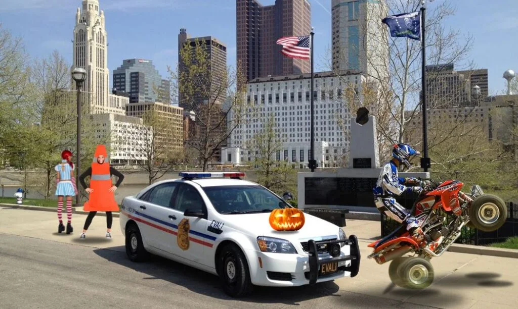 This costume can either be a stand alone costume, or if you want to be accurate, you can grab 15 to 30 of your closest annoyingly loud friends and go as a group, vroom-ing and honking your costumes all over town. Just throw on some bike helmets and walk around pretending to pop wheelies all night. One of you can even be a frustrated Columbus police officer, shaking their head in defeat. It’s accurate, it’s chaotic, and let’s be honest… it’s hilarious (though we might be biased since it was our idea after all).