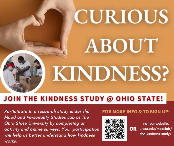 🧐 For more information & to sign up, please visit our website (u.osu.edu/mapslab/thekindness-study/), scan the QR code, or email us at ASC-MAPS_Kindness@osu.edu.