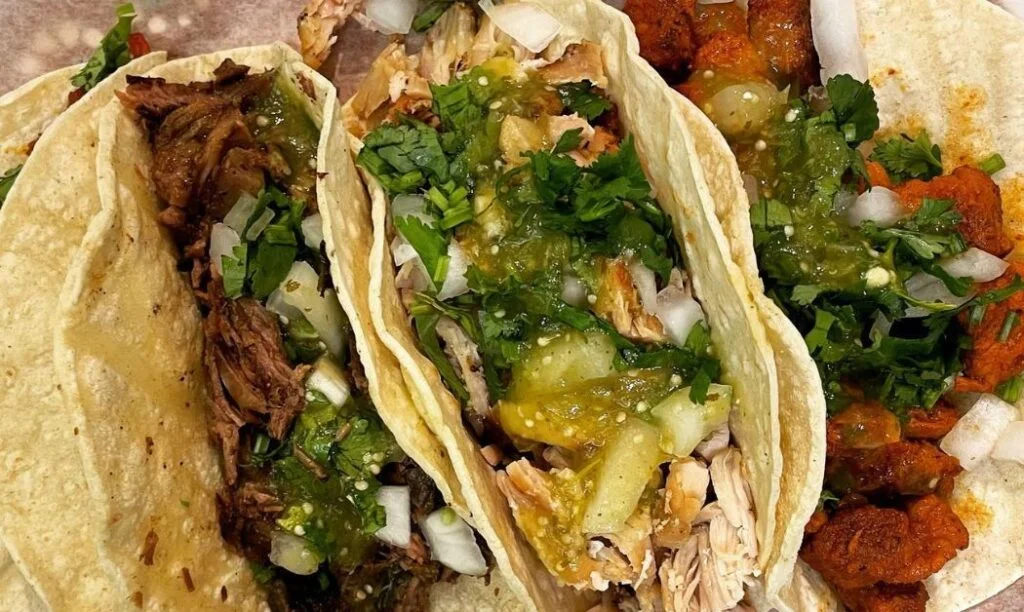 You can get Pastor, Asada, Pollo, and Chorizo tacos for just $3.50 each, Birria tacos for $4, or Mexican-style potato tacos for $3. And these things are so loaded that honestly, one or two could fill you up.
