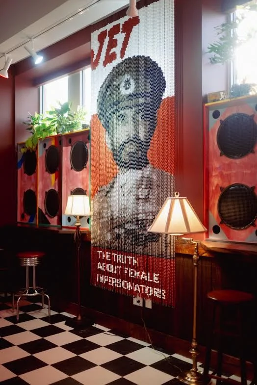 “Bar Room” (2022/2025) transforms a third-floor gallery at The Pizzuti into a space of connection, conviviality, and cultural memory. This permanent installation by Bahamian-born artist Tavares Strachan invites visitors to step through an unmarked door into a fully realized reggae bar—complete with handcrafted cocktails, locally roasted coffee, and light bites.