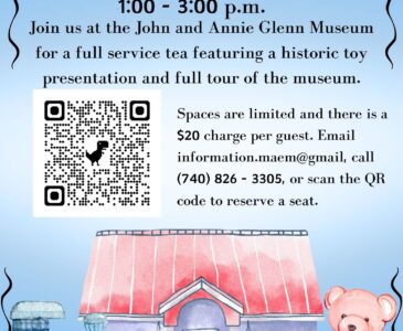 Join us at the John and Annie Glenn Museum for a full service tea featuring a historic toy presentation and full tour of the museum. Spaces are limited and there is a $20 charge per guest.
