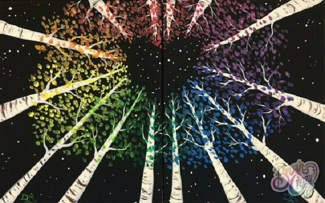 Come in and get a little Brush Crazy! Aspen Rainbow is our featured painting. We have step by step instructions, with pictures and words for you to follow along as you customize your very own art project!