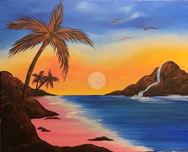 Pink sand, blue water and a serene sunrise make us all want to escape to Bahama Beach. By purchasing your seats, you confirm agreement with the following policies. DIY Candle Add-On Enhance your experience with our new DIY candle add-on for only $25. Simply arrive 30 minutes before class to pour your own all-natural soy candle in your favorite scent. It cures while you paint, so you will leave with both your masterpiece and your custom hand-poured candle.