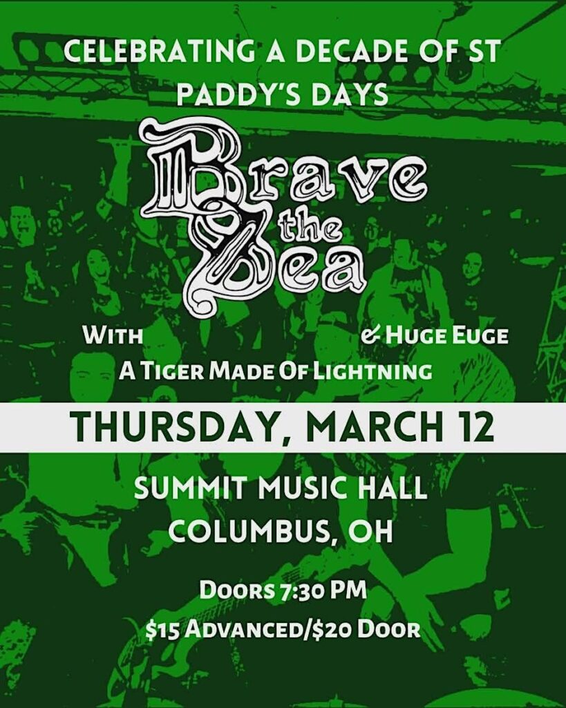 Come celebrate St. Paddy’s day with Brave The Sea! Special guests Huge Euge and A Tiger Made Of Lightning!