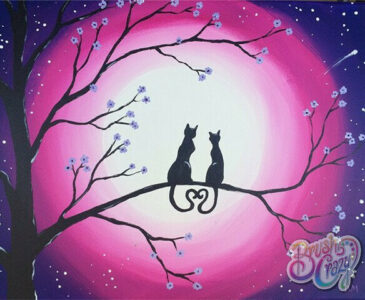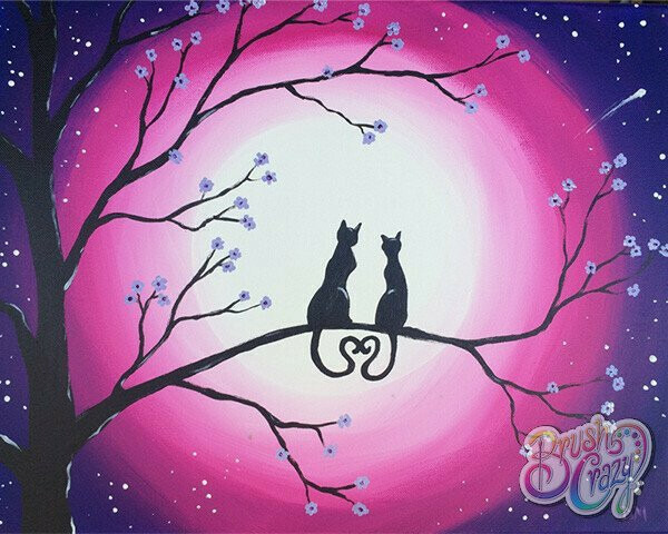 Come in and get a little Brush Crazy! Cat Romance is our featured painting. We have step by step instructions, with pictures and words for you to follow along as you customize your very own art project!