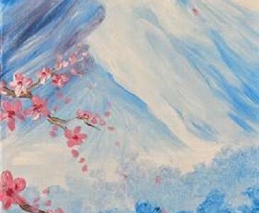 Soft cherry blossoms drift across a serene blue mountain, capturing a quiet moment where spring, sky, and stillness meet. By purchasing your seats, you confirm agreement with the following policies. DIY Candle Add-On Enhance your experience with our new DIY candle add-on for only $25. Simply arrive 30 minutes before class to pour your own all-natural soy candle in your favorite scent. It cures while you paint, so you will leave with both your masterpiece and your custom hand-poured candle.