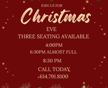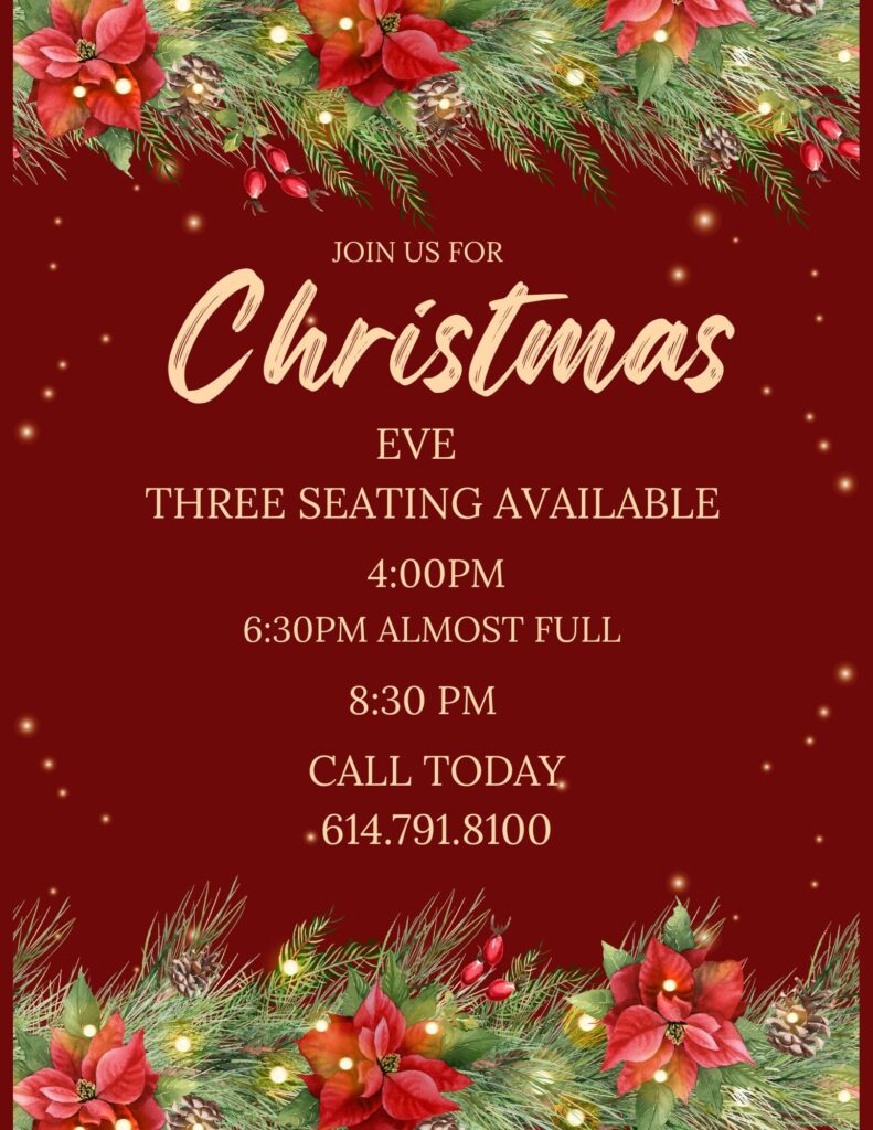 Reservations are filling quickly, so be sure to secure your spot. Call 614-791-8100 today to reserve your Christmas Eve table!