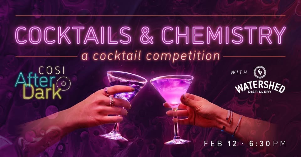 Sip on creative, chemistry-inspired cocktails, explore the science behind flavor, reactions, and mixtures, and enjoy hands-on experiences throughout COSI. With interactive demos, full exhibit access, and plenty of curious fun, raise a glass to science with us on Thursday, February 12!