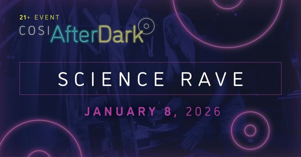 Kick off the new year at COSI After Dark: Science Rave, where science meets the dance floor. For one unforgettable night, COSI transforms into a multi-stage nightlife experience with local DJs igniting every corner of the museum. From pulsing house beats to high energy techno, bass heavy dubstep, and more, each exhibit space becomes its own immersive EDM stage that turns science into sound.