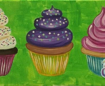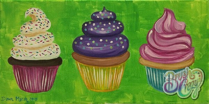 Come in and get a little Brush Crazy! Cupcakes is our featured painting. We have step by step instructions, with pictures and words for you to follow along as you customize your very own art project!