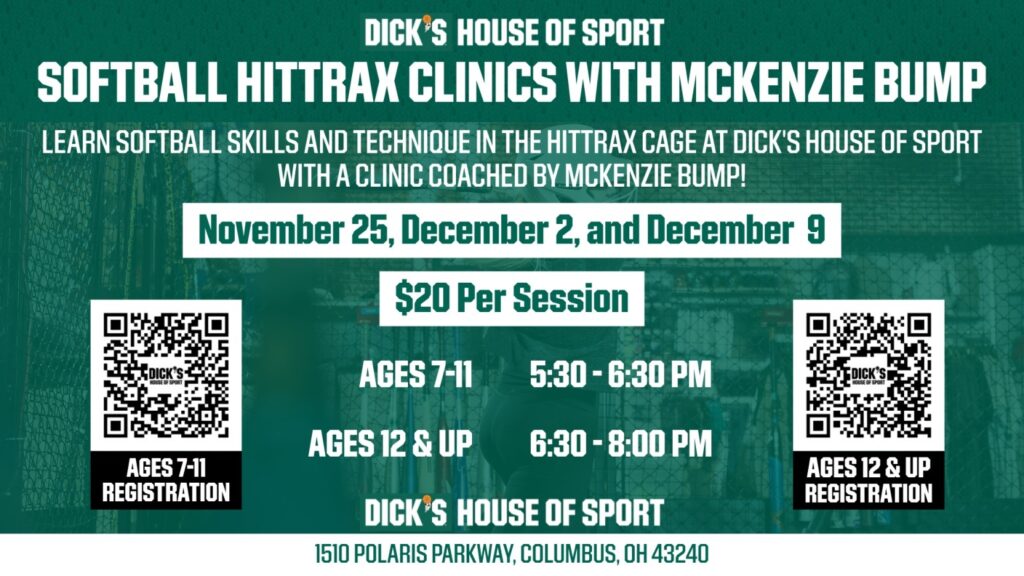Learn softball skills and technique in the HitTrax cage at DICK’S House of Sport with a clinic coached by McKenzie Bump!