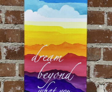 Come in and get a little Brush Crazy! Dream Beyond is our featured painting. We have step by step instructions, with pictures and words for you to follow along as you customize your very own art project!