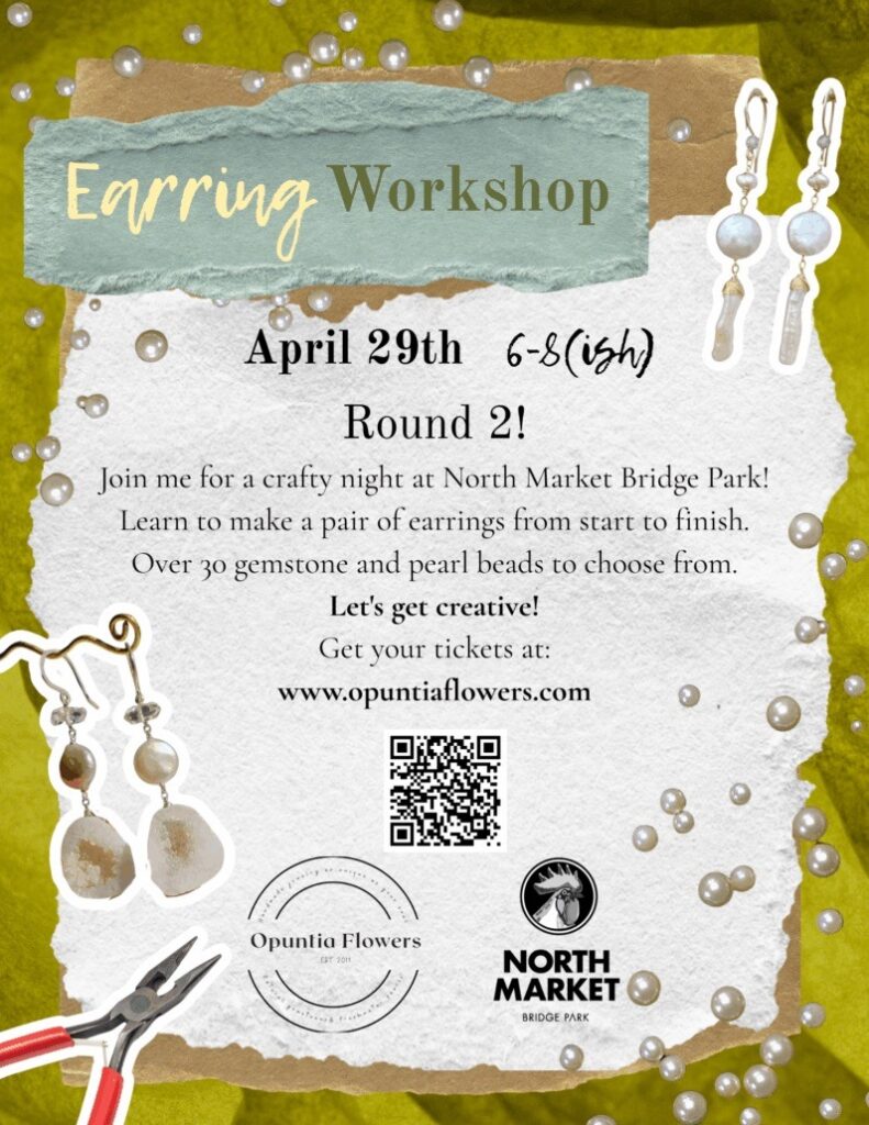 PURCHASE YOUR TICKETS AT: https://www.opuntiaflowers.com/shop/p/earring-workshop
