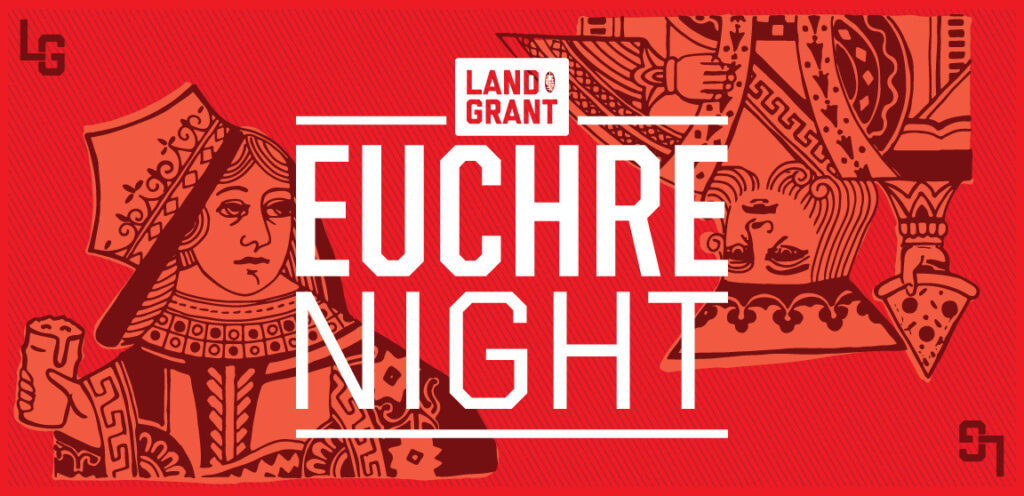 Euchre League is taking over the Land-Grant Taproom for 6 weeks of competitive card play. It’s free to play, with timed games, and standard Euchre rules. Sign up in advance to guarantee your spot for Week 1. Each week you return, your team automatically keeps a reserved spot. If you miss a week without sending a sub, your spot opens up to the waitlist. Weeks 1–4 build season standings, with Weeks 5–6 shifting into a tournament format and prizes on the line. Check-in starts at 5:30 PM; play starts at 6:30 PM.