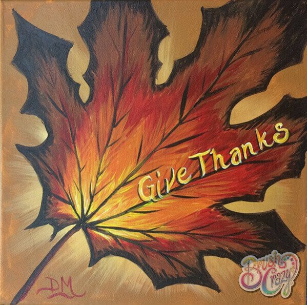 Come in and get a little Brush Crazy! Give Thanks is our featured painting. We have step by step instructions, with pictures and words for you to follow along as you customize your very own art project!