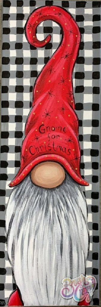 Come in and get a little Brush Crazy! Gnome for Christmas is our featured painting. We have step by step instructions, with pictures and words for you to follow along as you customize your very own art project!