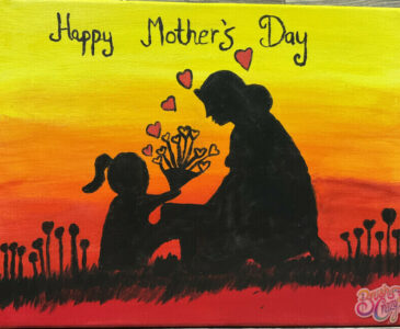 Come in and get a little Brush Crazy! Happy Mother’s Day is our featured painting. We have step by step instructions, with pictures and words for you to follow along as you customize your very own art project!