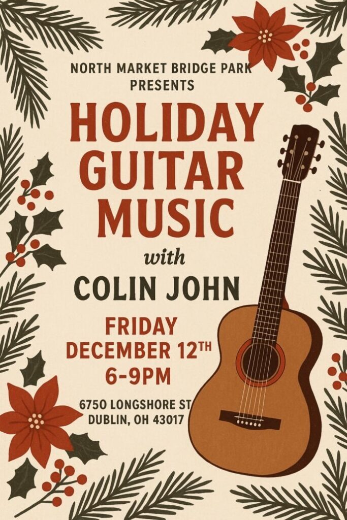 Join us on Friday, December 12th for an evening of live holiday tunes with Colin John. Get comfy with some good food and good drinks for some jazzy soulful holiday guitar riffs.