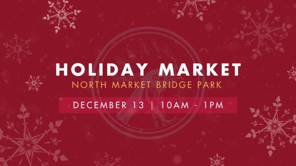 Join us at North Market Bridge Park for one of our favorite seasonal markets – the Holiday Market! Stop by any time from 10am-1pm to see 25+ of your favorite local vendors selling their best Holiday products to get in the spirit.