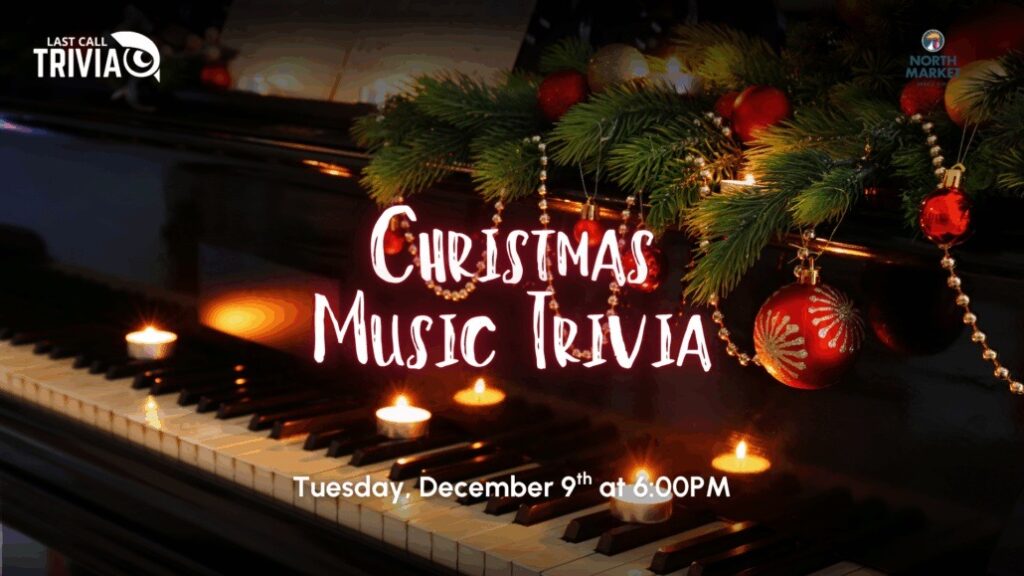 Jingle all the way to North Market Bridge Park on Tuesday, December 9 from 6–8 PM for a night of Holiday Music Trivia! Test your knowledge of classic carols, pop hits, and festive favorites while enjoying delicious food and drinks from our market vendors. Bring your friends, form a team, and compete for fun prizes in a cheerful, music-filled atmosphere.