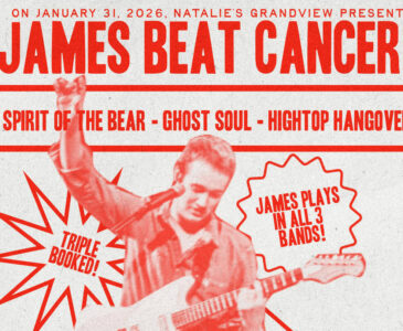 Join us at Natalie’s for night of music and community as we celebrate James Harker beating cancer! Watch him perform with all of his bands: Hightop Hangover, Ghost Soul, and of course Spirit of the Bear all in one night on one stage. James has felt nothing but love and support from everyone over the last several years, and he is ready to give it back tenfold with his friends.