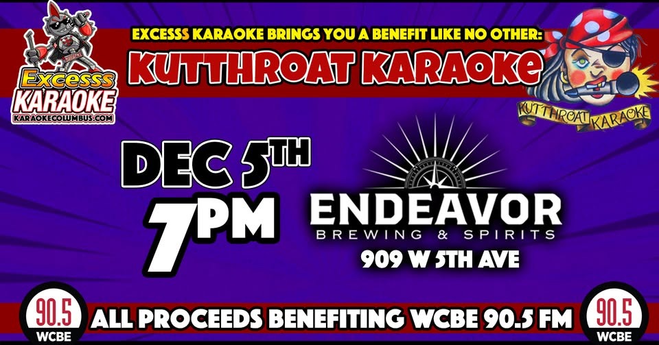 Join us for Kutthroat Karaoke at Endeavor Brewing Friday Dec 5 at 7 pm for a chance to sing some karaoke with some of your favorite WCBE personalities!