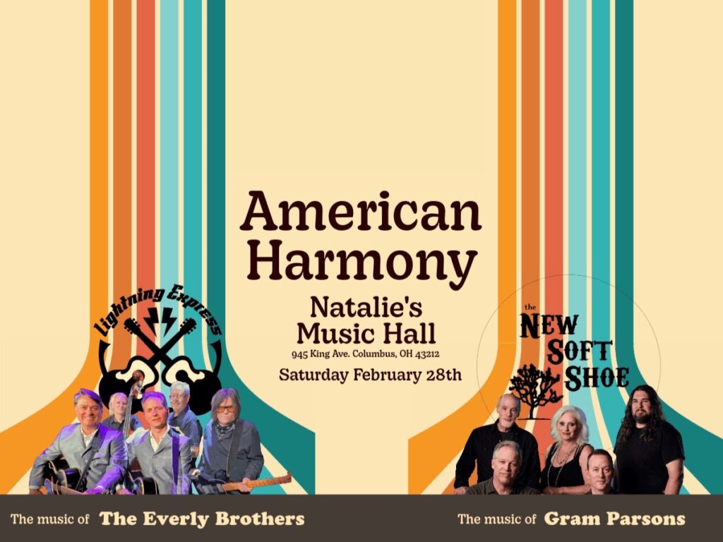 The New Soft Shoe is a Cleveland based band that covers the catalog of Cosmic American Music’s Gram Parsons. Since the founding of the band 15 years ago, they have a consistent monthly 2nd Thursday show at Forest City Brewery, played the Rock Hall and other venues, multiple times at the Gram Parsons Pull in Waycross, GA, Gram’s childhood home, and put their own twist on many of the classic Gram, Flying Burrito Brothers, Byrds, and International Submarine Band songs. The band digs deep into the catalog with the only rule that Gram had to have played the song at least once for it to be performed by the band. Lighting Express: A Tribute to the Everly Brothers Lighting Express brings the legendary Everly Brothers into sharp focus for today’s audiences. Known for their seamless harmonies and raw emotional power, the Everlys shaped the DNA of rock, country, and Americana—echoes still heard in artists from the Beatles to Billie Joe Armstrong. With striking vocals and authentic arrangements, Lighting Express captures the spirit and innovation of the Everly Brothers, offering a roots-driven concert experience that feels as vital now as it did then. Perfect for theaters, festivals, and listening rooms, the show bridges generations of music lovers who crave authenticity, harmony, and soul.