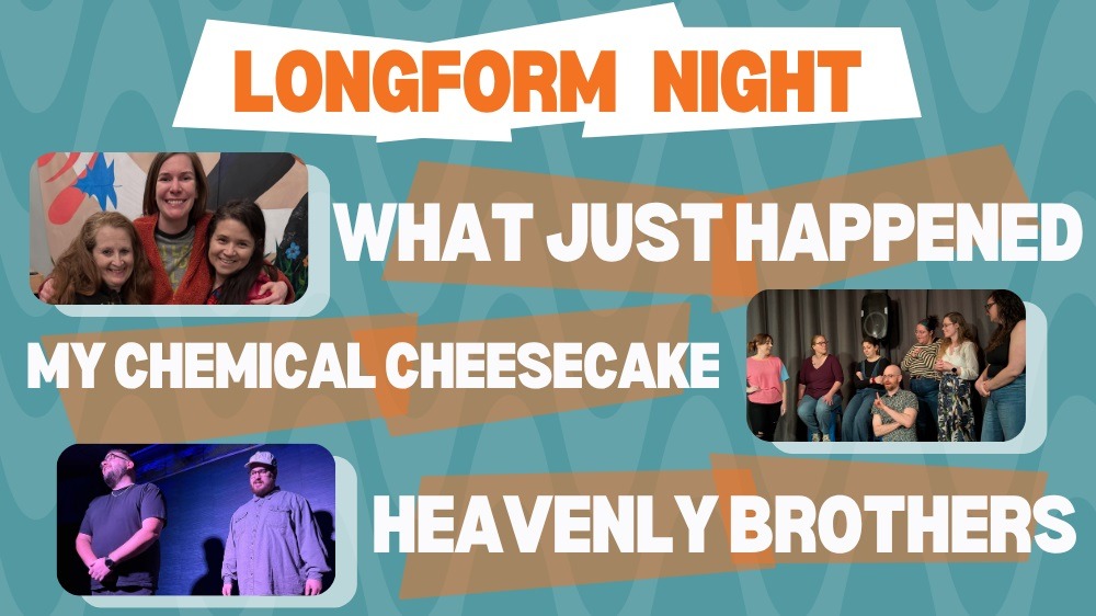 Longform improv is most easily described as an improvised set of scenes and characters inspired from a single suggestion. Tonight we’ve got wonderful teams lined up!