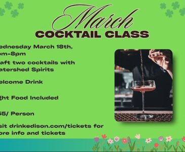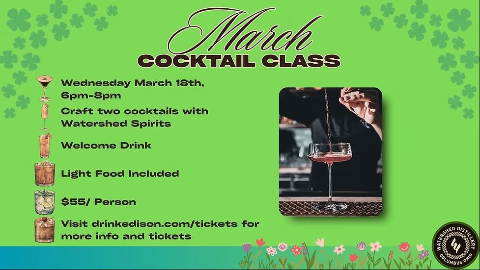 This is the last class in a series of four hosted this winter. Attendees will be welcomed with a cocktail upon arrival. A representative from Watershed will discuss mixology. Participants will make two cocktails while learning bartending skills. The ticket price includes food, which will be provided.
