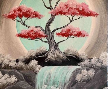 Not only a striking picture, but a mesmerizing painting with its glowing jade moon and cherry blossom tree. By purchasing your seats, you confirm agreement with the following policies. DIY Candle Add-On Enhance your experience with our new DIY candle add-on for only $25. Simply arrive 30 minutes before class to pour your own all-natural soy candle in your favorite scent. It cures while you paint, so you will leave with both your masterpiece and your custom hand-poured candle.