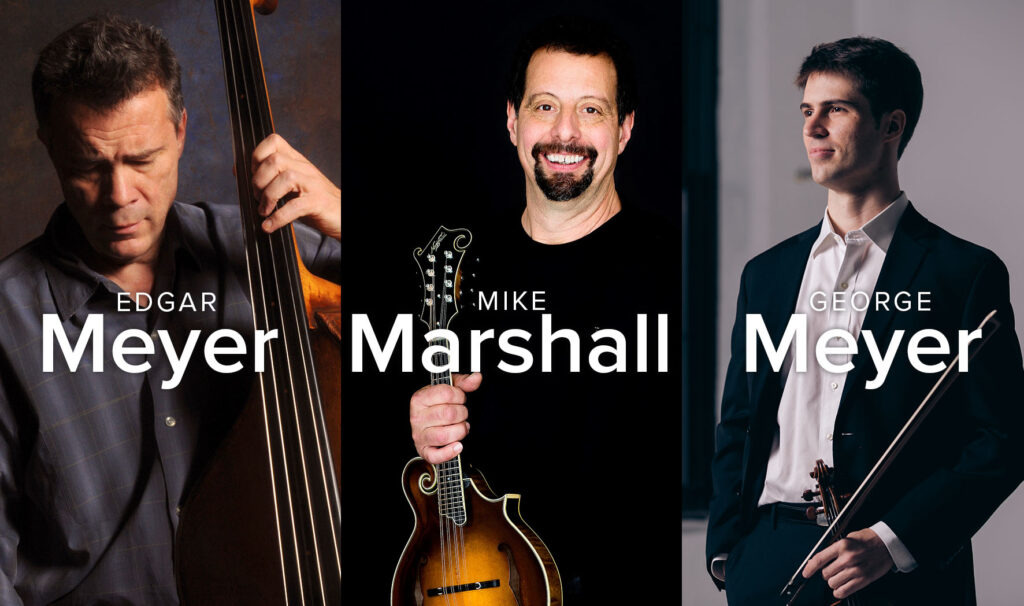 American music masters Edgar Meyer (bass) and Mike Marshall (mandolin) join together with George Meyer (violin) for a special collaboration usually only heard on the summer bluegrass festival circuit!