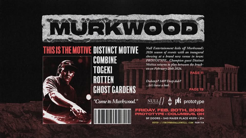 Murkwood is a celebration of soundsystem music and the culture around it. Join us on February 20th as we welcome Distinct Motive back to Murkwood for a stop on his This is The Motive Tour alongside champion support Combine and Togeki for their first plays between the brackets.