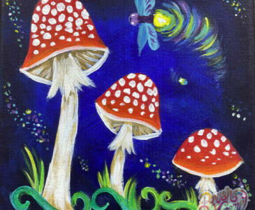 Come in and get a little Brush Crazy! Mushroom Trio is our featured painting. We have step by step instructions, with pictures and words for you to follow along as you customize your very own art project!