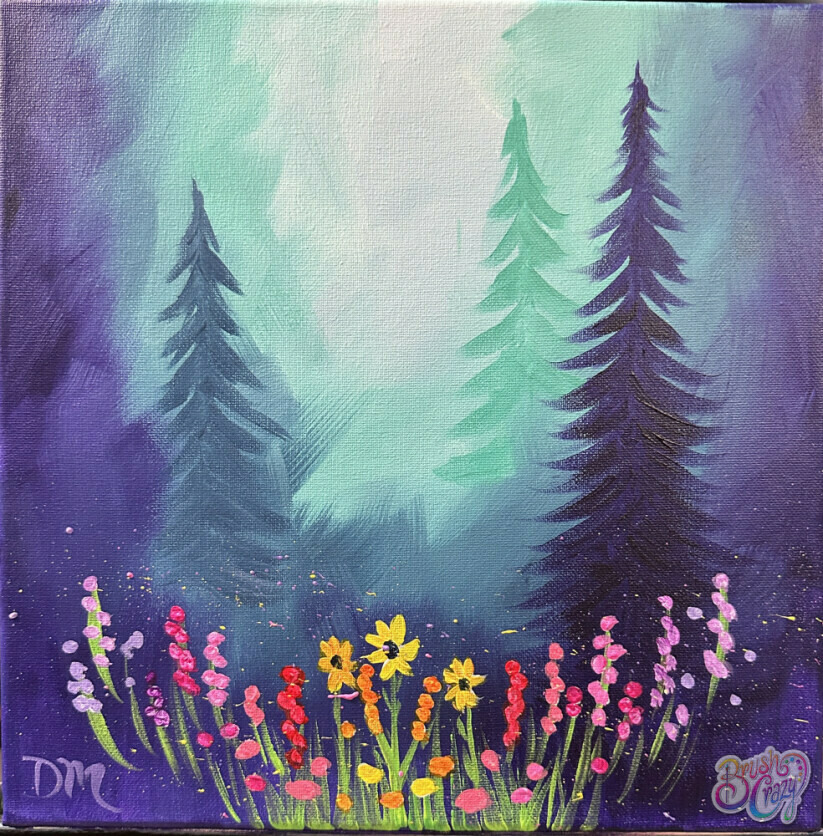 Come in and get a little Brush Crazy! Mystical Trees is our featured painting. We have step by step instructions, with pictures and words for you to follow along as you customize your very own art project!