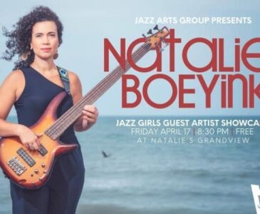 Celebrate women in jazz with the opening concert to our Jazz Girls Showcase featuring bassist Natalie Boeyink. This free concert at Natalie’s Grandview features world class musicians and kicks off our Jazz Girls Day festivities.