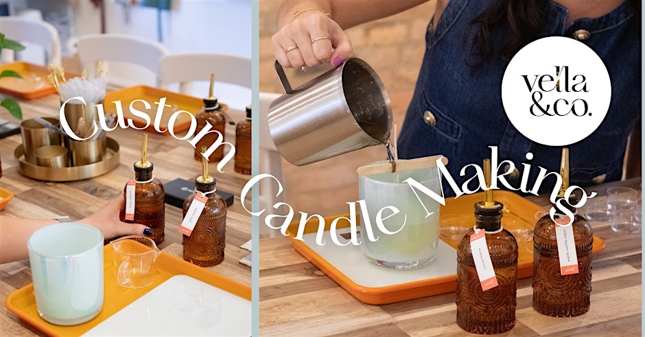 POUR PROCESS:1. Choose your luxury 12 oz candle vessel 2. Choose a fragrance from our wall of 70+ options (you can mix to create your own recipe!)3. A Vella instructor will lead you through the candle-making process while you relax and socialize!