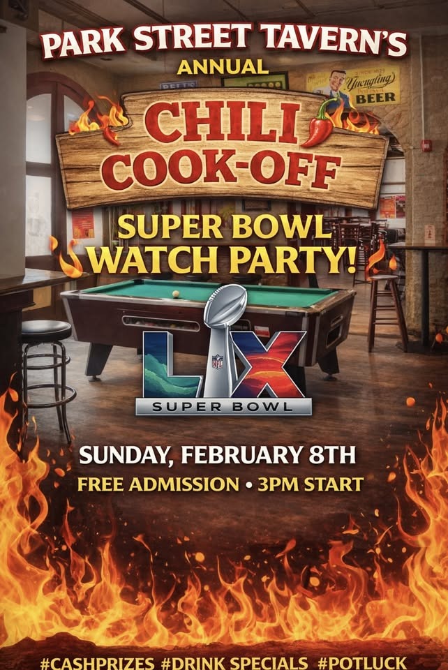 Join us at Park Street Tavern for our Annual Super Bowl Chili Cook-Off, where bold flavors, cold drinks, and football vibes collide before the biggest game of the year.