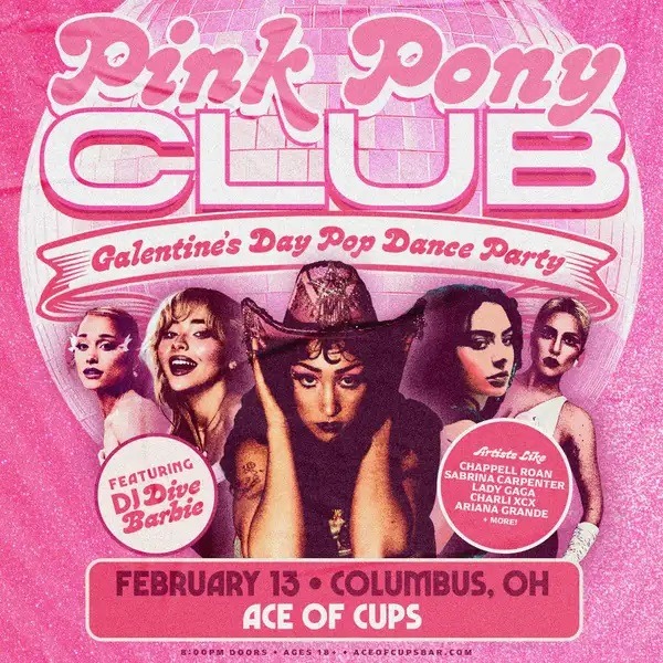 Party like a Midwest Princess at the Pink Pony Club all night with a modern pop dance party for the girls and the gays. Come spill your GUTS and sing-scream and dance to modern pop hits and deep cuts from Chappell Roan, Sabrina Carpenter, Tate McRae, Charlie XCX, Olivia Rodrigo, Renee Rapp, Kesha, Lady Gaga and more! Get ready for a night out with your besties – grab your glitter, a themed drink from the bar and meet us on the dance floor w/ DJ Dive Barbie