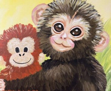 Love and comfort don’t always come in the same shape and form as expressed in this painting “Puch Love” Inspired by Punch, the abandoned monkey being raised in a zoo near Tokyo, Japan. Punch has used a stuffed orangutan toy to soothe him as he has transitioned into his home with the other macaques.