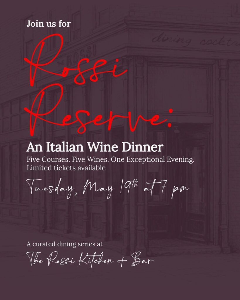 Rossi Reserve is designed to feel intimate and relaxed while still offering the kind of elevated dining experience that turns an ordinary Tuesday into something memorable. Guests will be guided through each pairing while enjoying great conversation, exceptional wines, and a table meant to be savored.